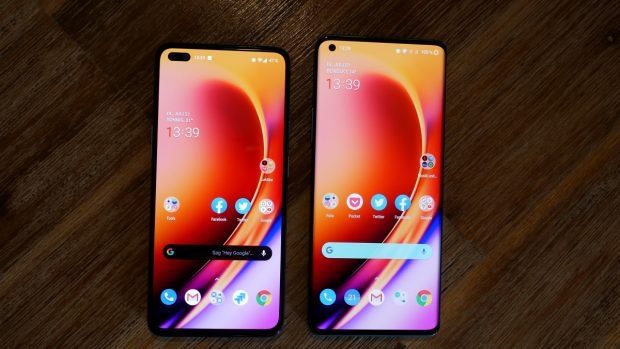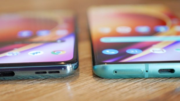 Der Oneplus Nord neben dem Oneplus 8 Pro – das Display ist fast so hell wie das des teureren Modells. (Foto: t3n)