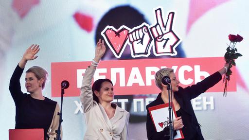 In Weißrussland werden sie „die drei Gnaden“ genannt: Svetlana Tichanowskaja, Weronika Zepkalo und Maria Kolesnikowa haben dem Präsidentschaftswahlkampf neue Impulse gegeben. Diesen Donnerstag stehen sie auf einer Bühne in der Hauptstadt Minsk und werden von Zehntausenden von Anhängern angefeuert. Nach Angaben der Menschenrechtsorganisation Wesna haben sie rund 34.000 Menschen mobilisiert. Es ist die größte Oppositionsaktion in der ehemaligen Sowjetrepublik seit Jahren.
